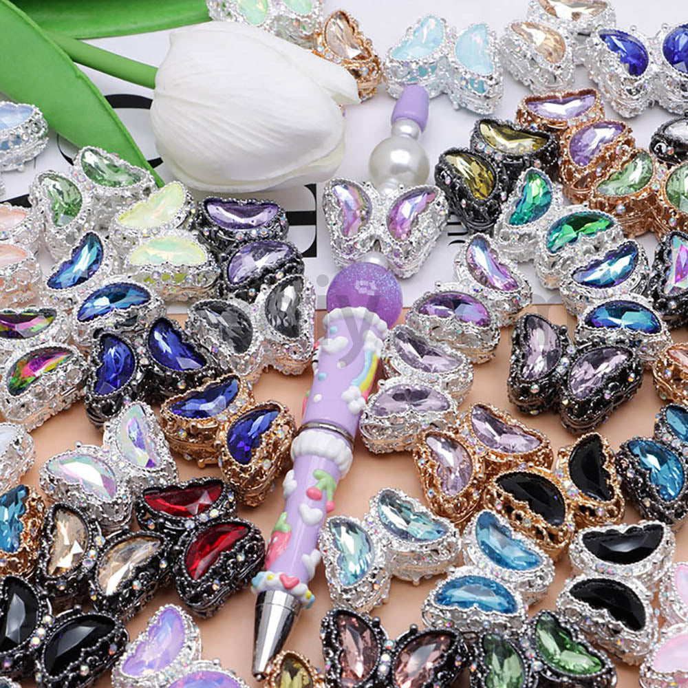 FS0359- 30MM Mixed Color UV Plating Diamond Alloy Butterfly Reads Fit For Beadable Pens