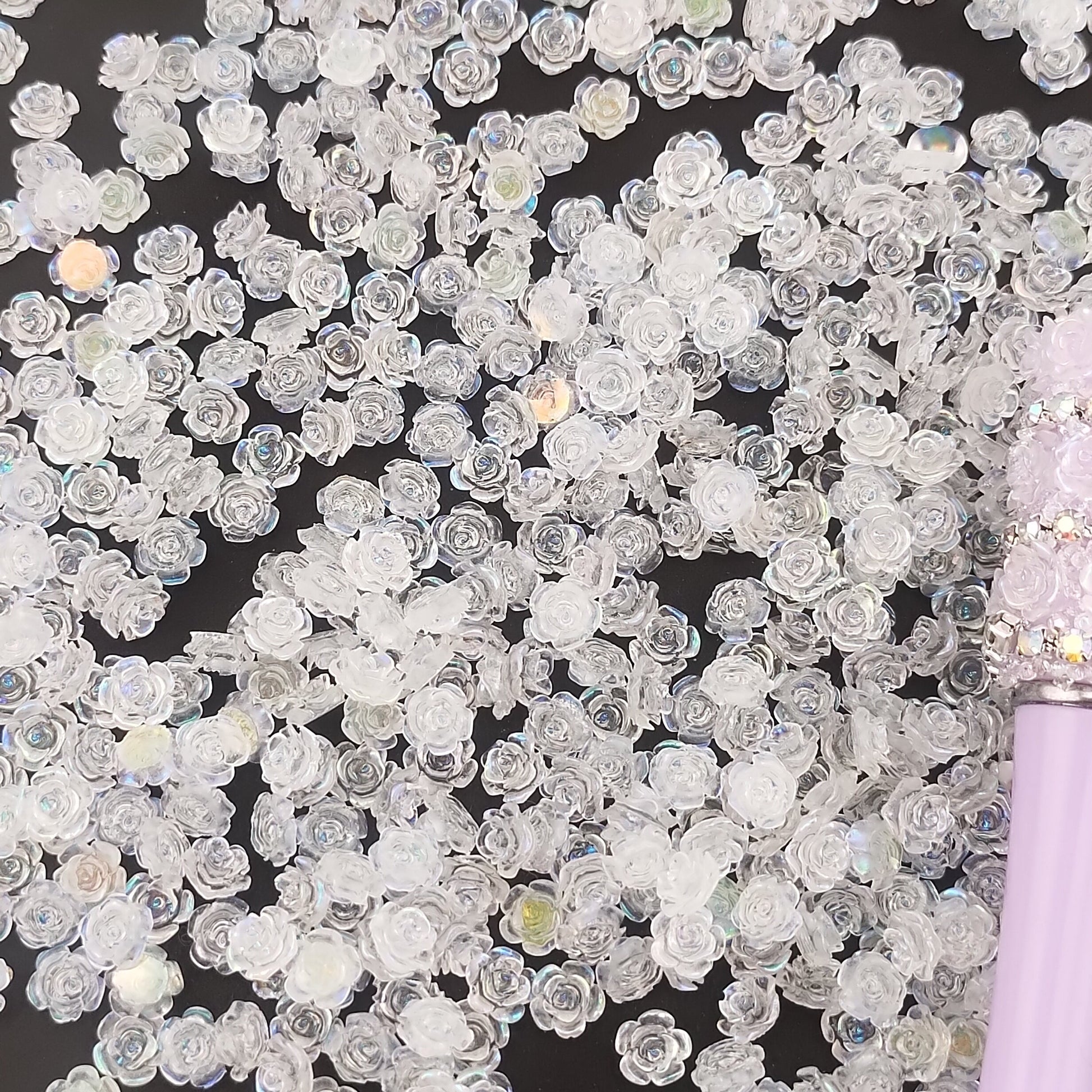 FS1027- 6MM Clear Rose Resin Flower Nail Charms For Making Fancy Bead Or Fancy Pen