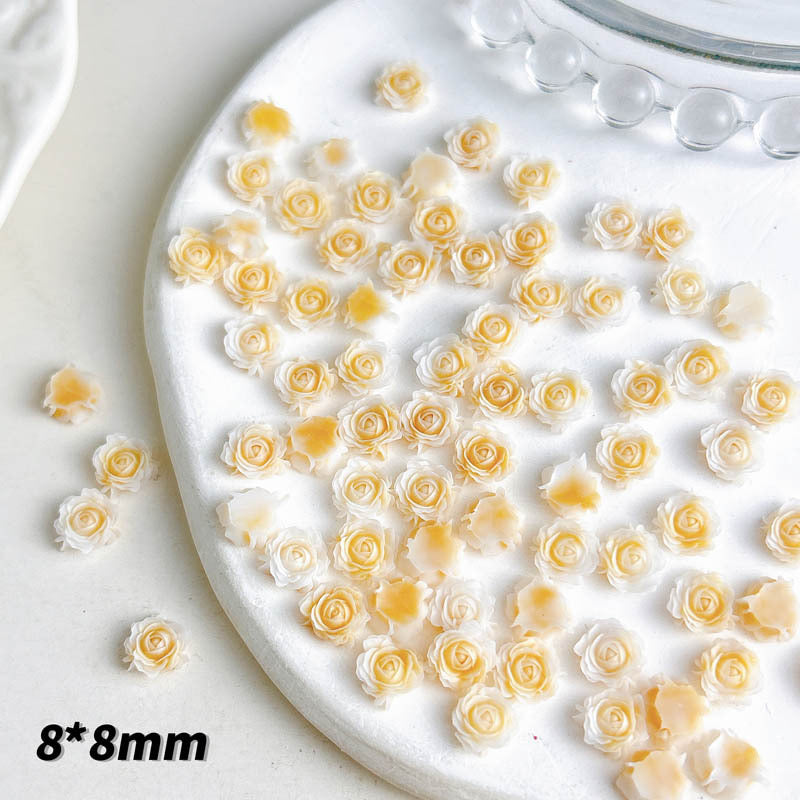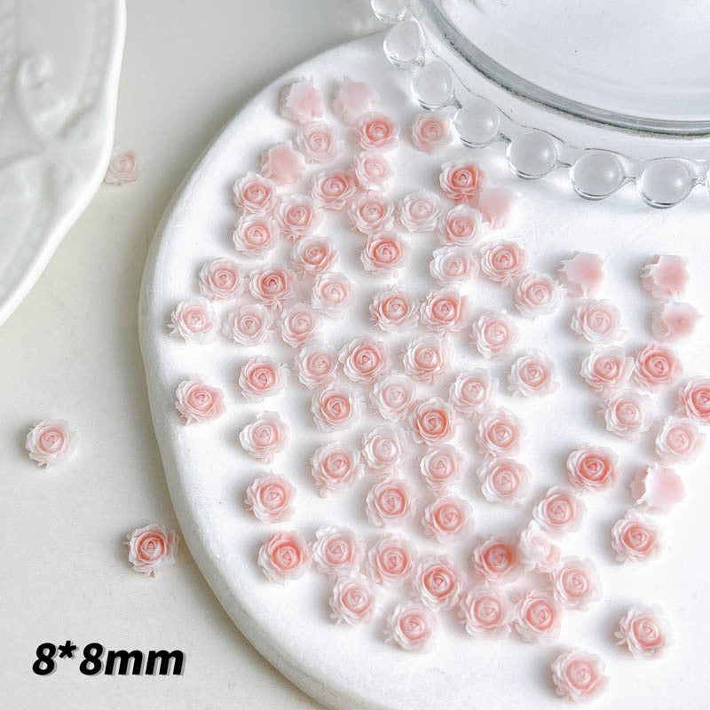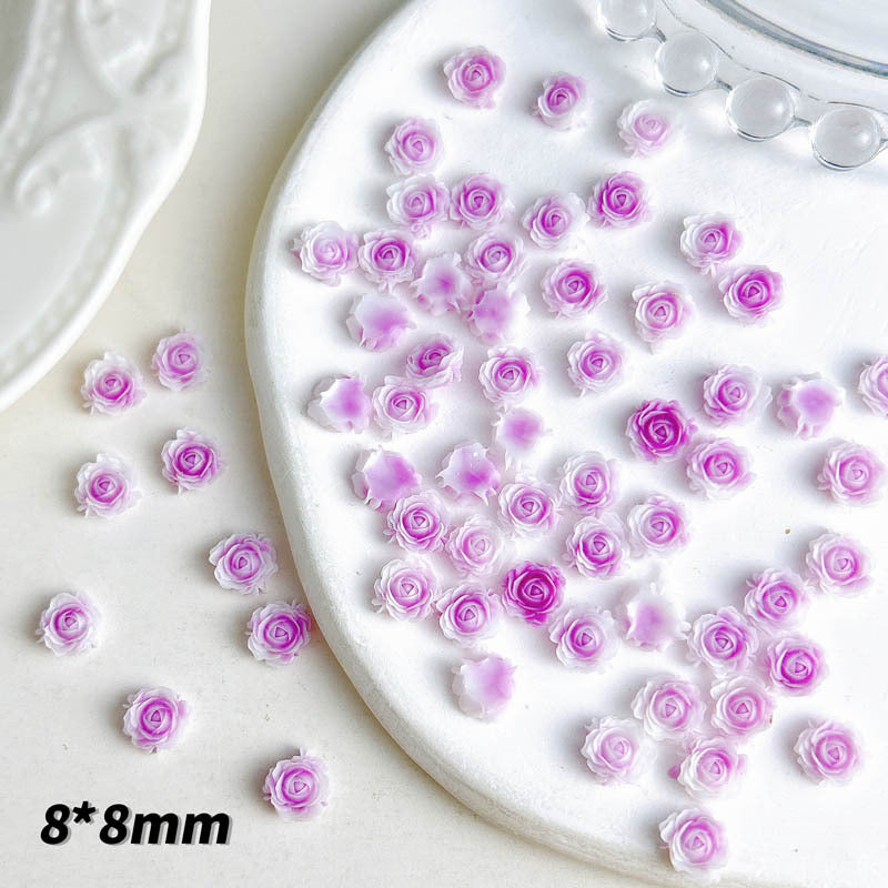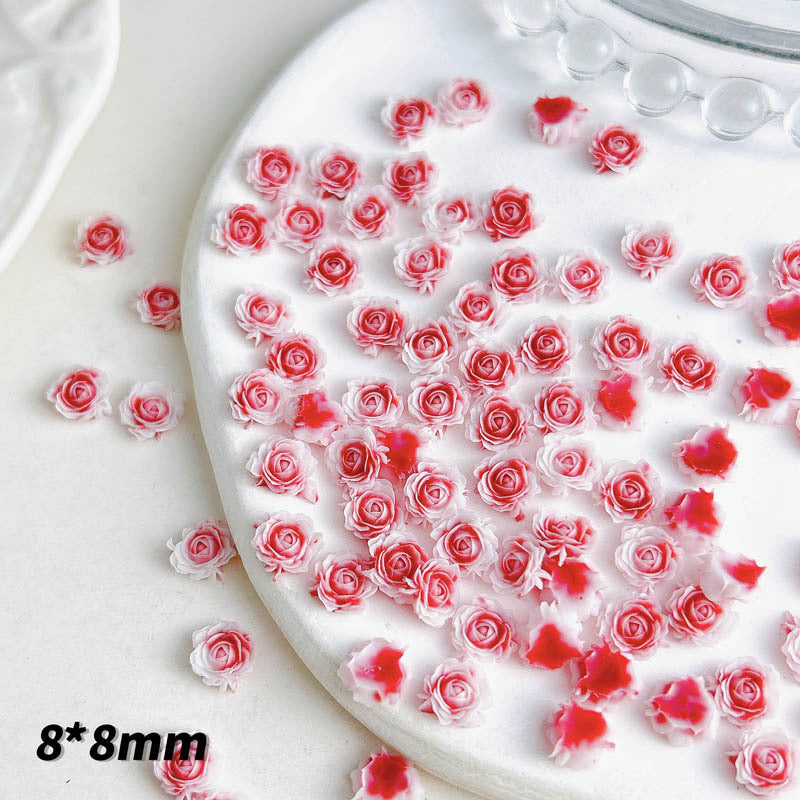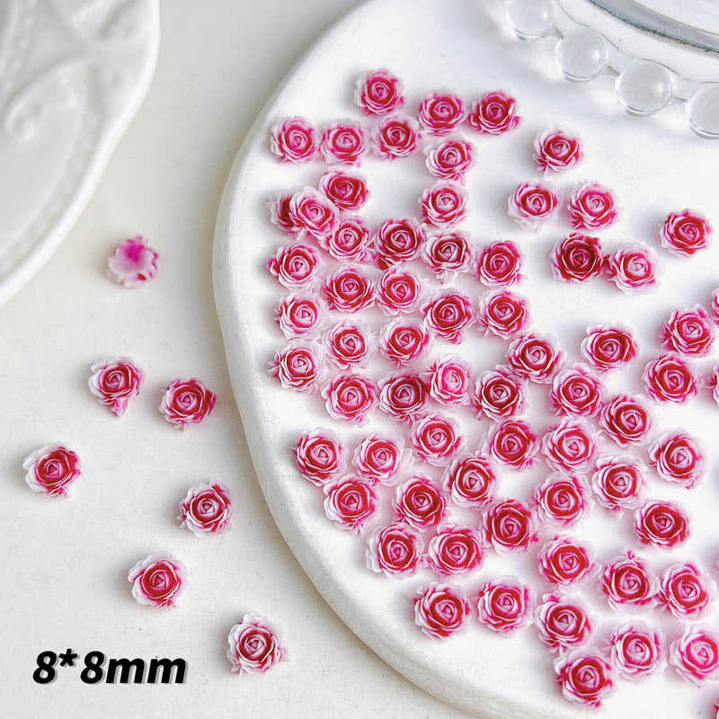 FS1060- 8MM Mixed Color Glowing Rose Resin Flower Nail Charms For Making Fancy Bead
