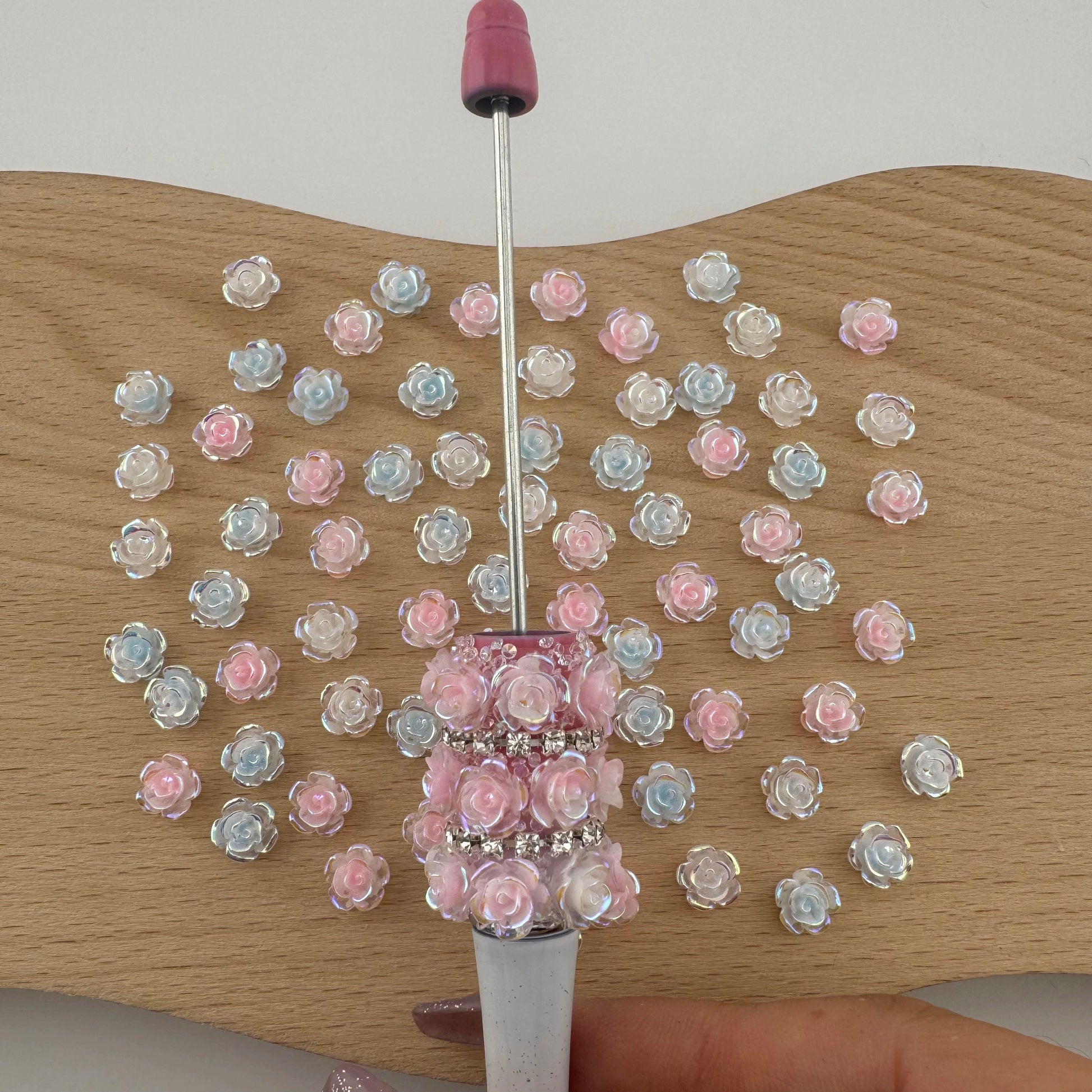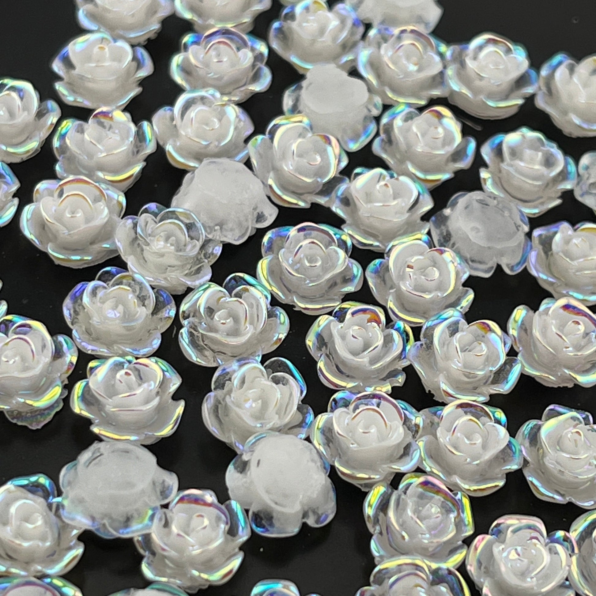 FS1505-8MM UV Glowing Rose Flower Nail Resin Charms For Making Fancy Pen Or Fancy Beads
