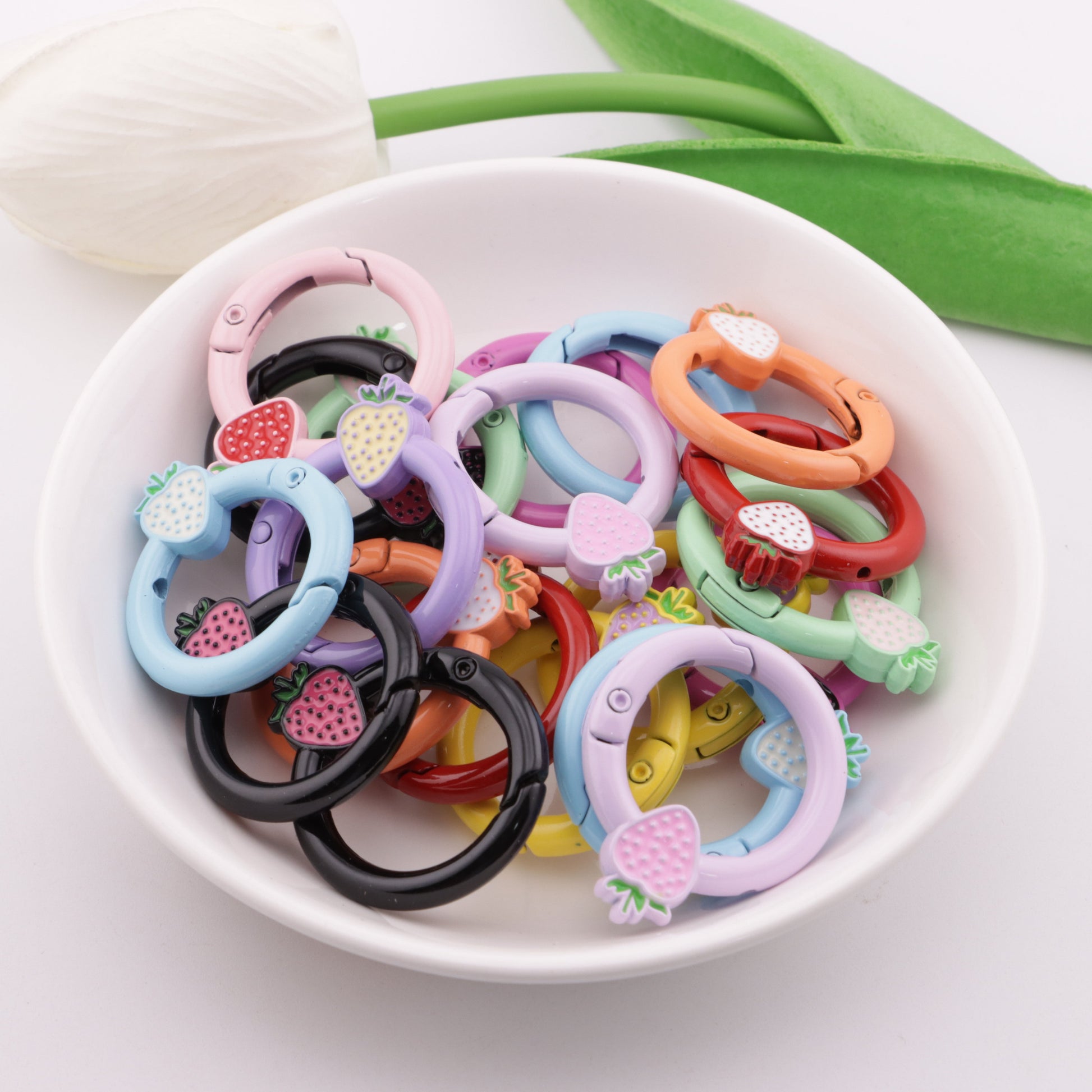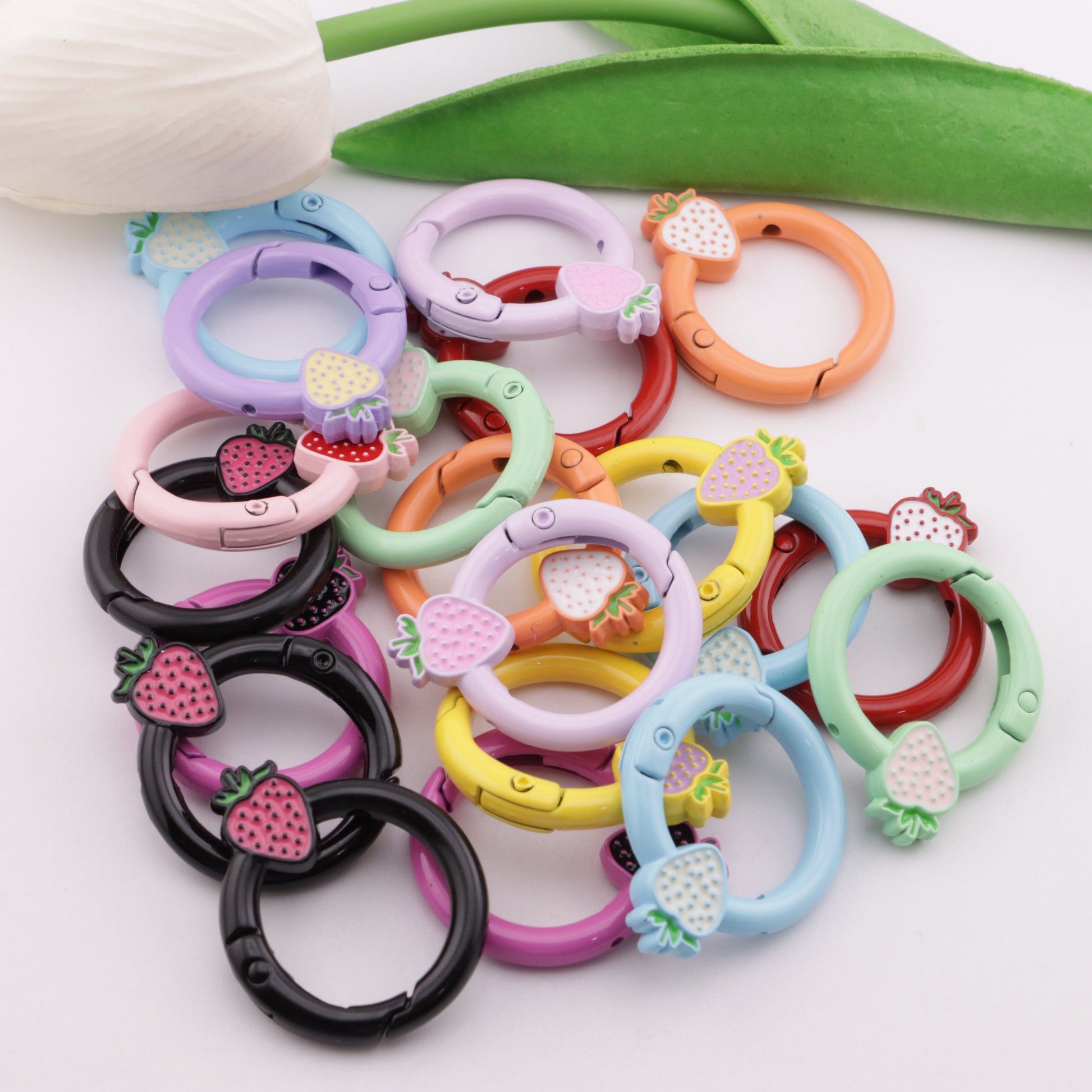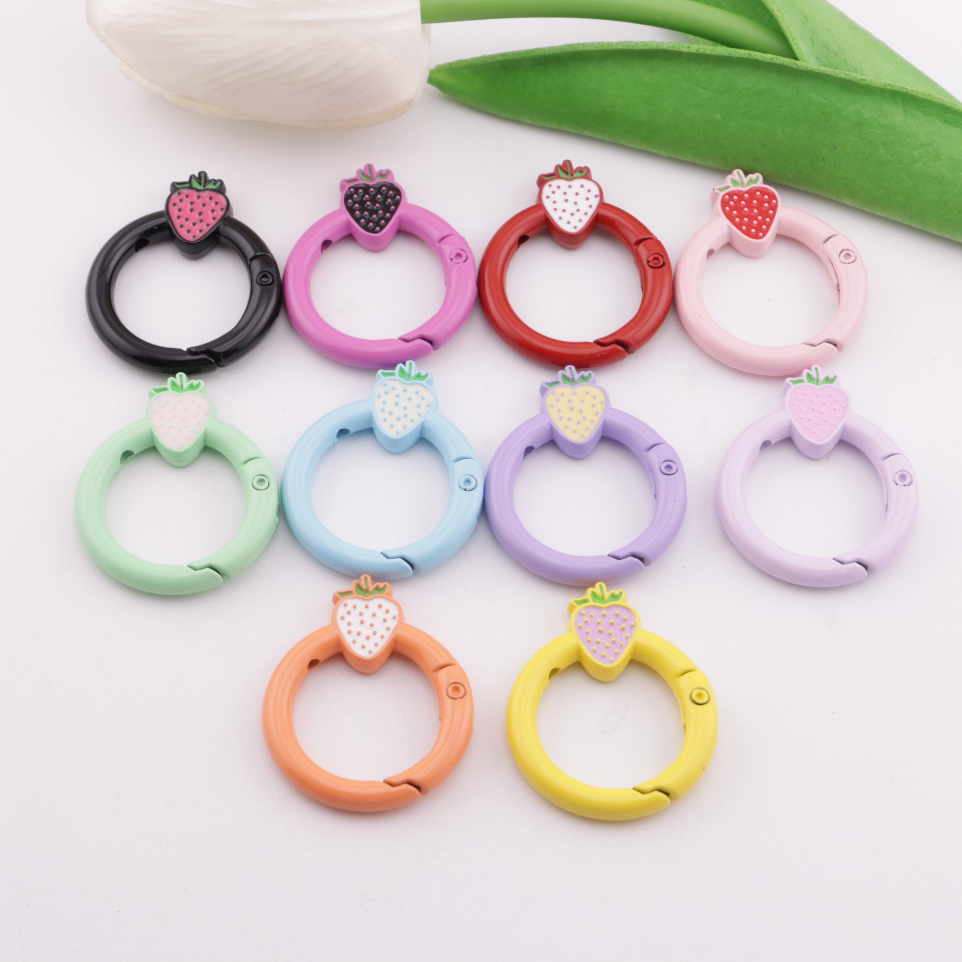 FS5950- 27mm Strawberry Keychain, Baked - Enamel Strawberry Key Ring